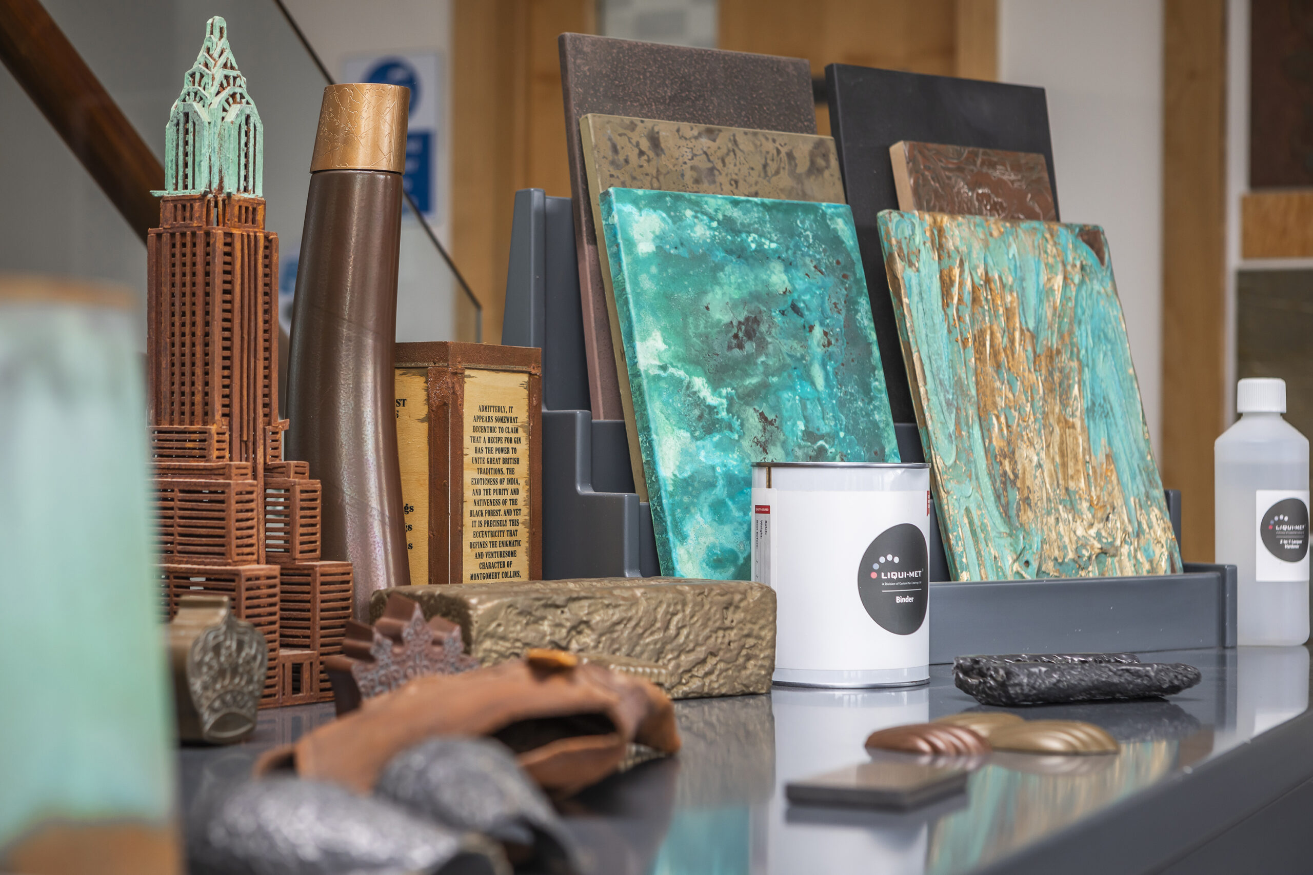 Our cutting-edge Liquid Metal Technologies capability is a game changer… When handled by an experienced craftsman, this decorative metal coating enables the transformation on any substrate to appear as solid metal.