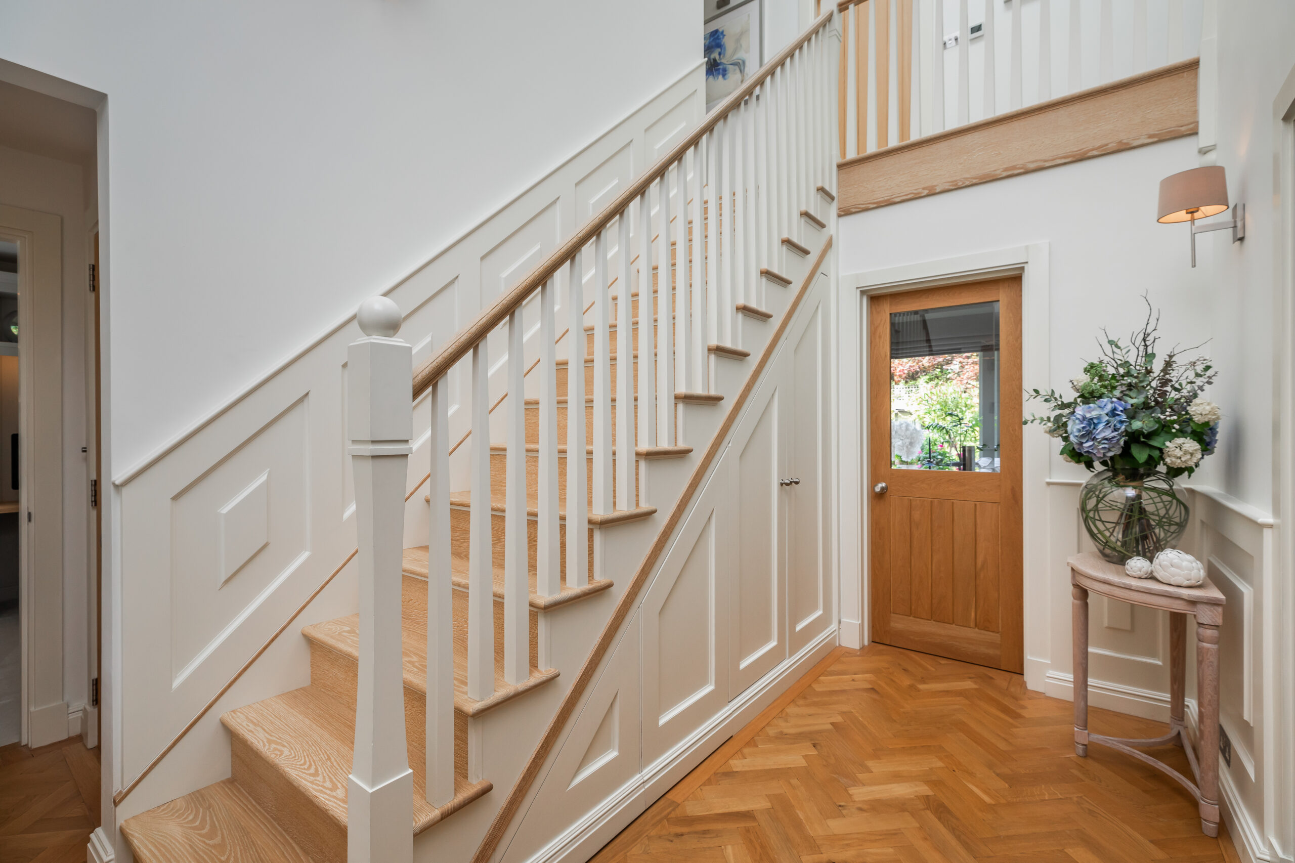 From entering a gateway, passing through a front door, walking across a parquet floor to peeping out of a sashed window, each element builds the backdrop. A sweeping white oak staircase or an elegantly panelled room provides areas of focus. The finesse of the smallest of details - brushed satin nickel furniture accessories and British brassware adds additional narrative until the entire space becomes centre stage.